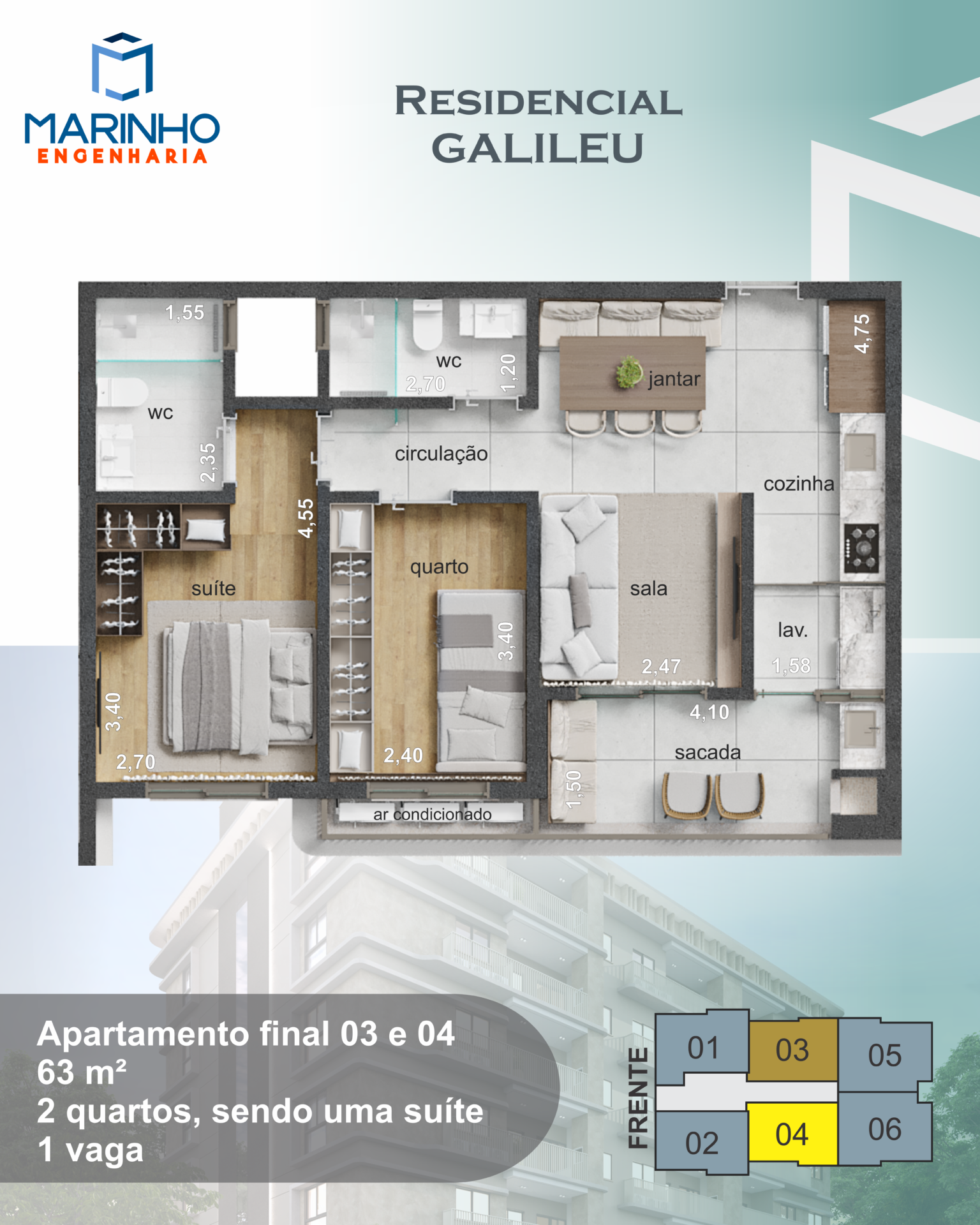 ** área privativa: 63 m²
